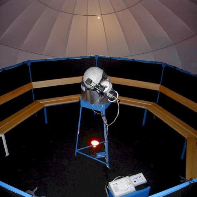Intérieur du premier planétarium. La partie coupole a été rajoutée par montage photographique. La prise de vue aurait été impossible autrement.