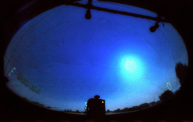 Le spectacle commence avec le ciel diurne où le soleil est exactement à sa place. Un afficheur à gauche indique la date et l’heure précise de la journée en cours.