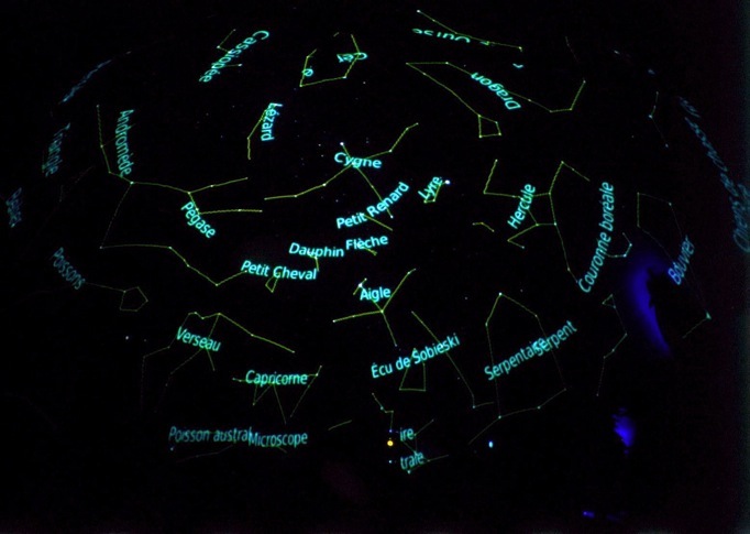Représentation graphique et nominative des constellations ; on peut également faire apparaître les frontières des astérismes.