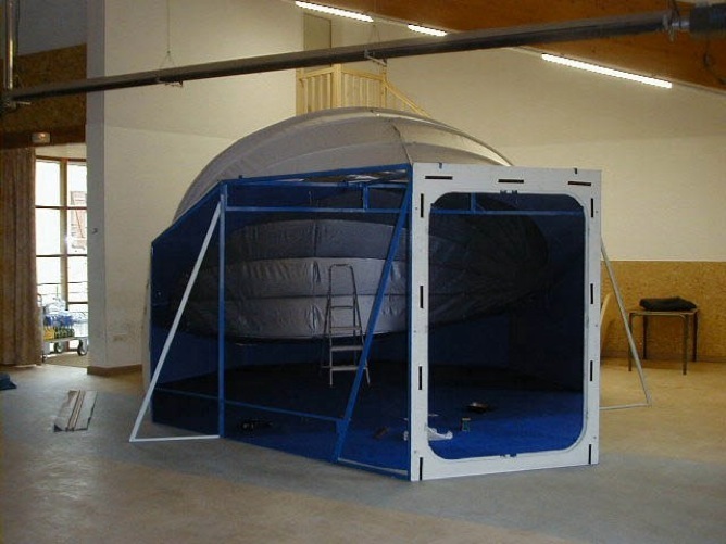 La coupole est développée, il ne reste qu’à enclencher les portes et à tendre la bâche de l’entrée.