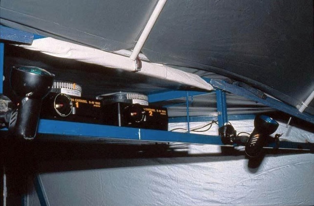 Les deux projecteurs de diapositives avec leurs objectifs de 25 mm pour une projection large en fondu-enchaîné.